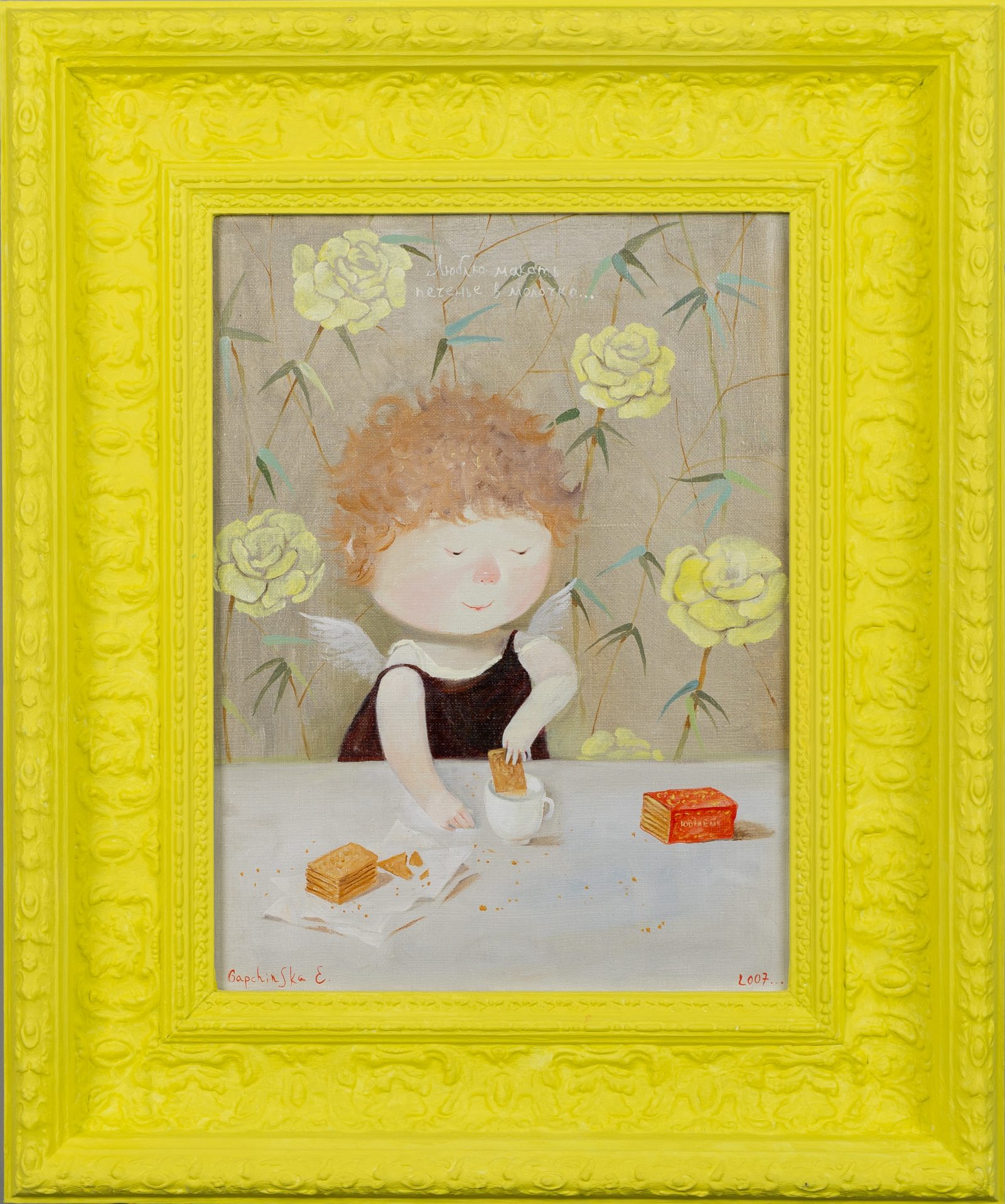 Роботи Гапчинської вирізняються зображенням маленьких пухкеньких персонажів із великими очима, які часто нагадують янголят. Ці образи передають щирість, радість і безтурботність дитинства. Художниця називає себе “постачальником щастя №1”, оскільки її картини викликають у глядачів посмішку та теплі емоції.